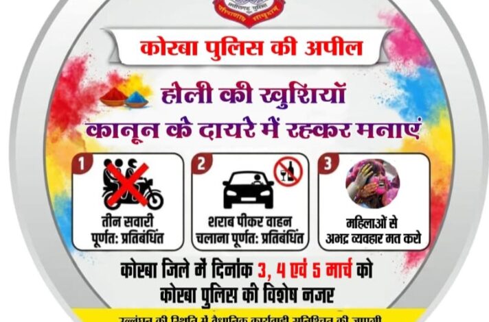 होली पर्व के मद्देनज़र कोरबा पुलिस द्वारा एडवाइजरी पंपलेट जारी