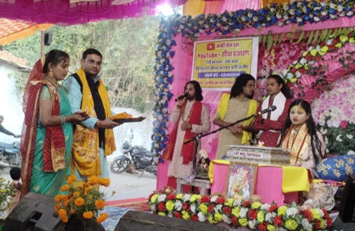 यजमान डॉ. एमएल चंद्रा व राजेश्वरी चंद्रा ने व्यास पीठ में उनके विराजित होने पर भगवान भागवत के साथ उनका पूजन किया। तत्पश्चात व्यास पीठ से कथावाचिका देवी तन्नू पाठक जी ने