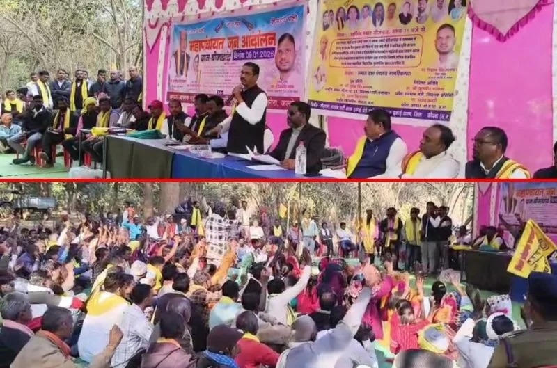 पोड़ी-उपरोड़ा क्षेत्र में प्रस्तावित कोयला खदान का आदिवासी महापंचायत ने किया विरोध, एक दिवसीय जन आंदोलन में गोंगपा विधायक बोले: जमीन देने का फैसला ग्रामीण करेंगे