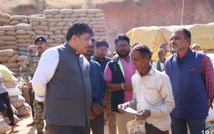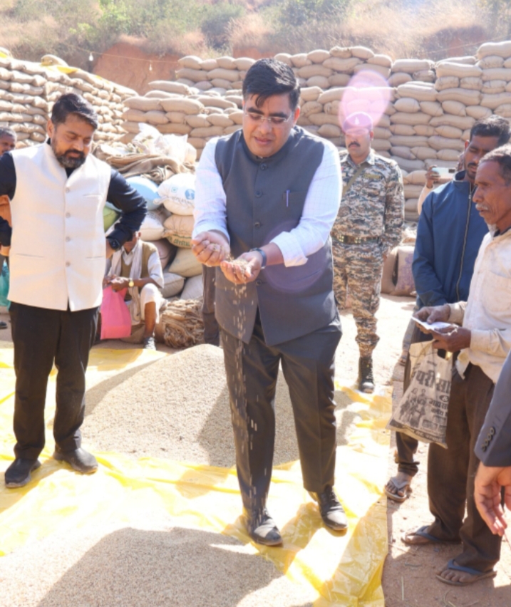 कोरबा।कलेक्टर कुणाल दुदावत ने आज खरीफ विपणन वर्ष 2025-26 के अंतर्गत कोरबा विकासखंड के ग्राम बरपाली स्थित धान उपार्जन केंद्र का औचक निरीक्षण किया। उन्होंने केंद्र में पहुंचे किसानों के धान की नमी और गुणवत्ता को स्वयं परखकर खरीदी की स्थिति का जायजा लिया। निरीक्षण के दौरान उन्होंने किसानों से केंद्र में उपलब्ध सुविधाओं और व्यवस्थाओं के बारे में जानकारी ली।