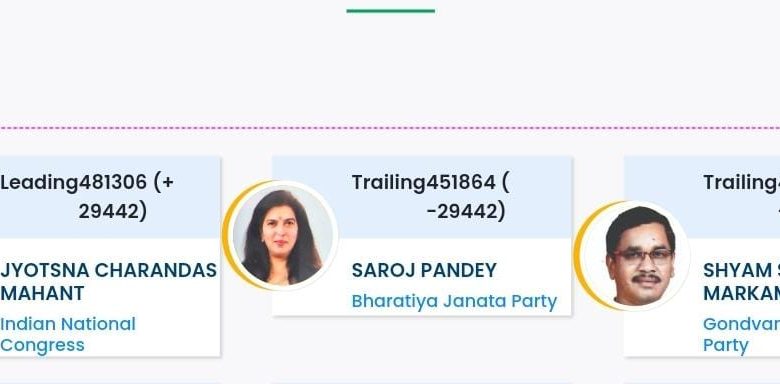 हार के मुहाने पर सरोज पांडेय, अंतिम चरणों पर गिनती और ज्योत्सना महंत 29 हजार वोटों से आगे