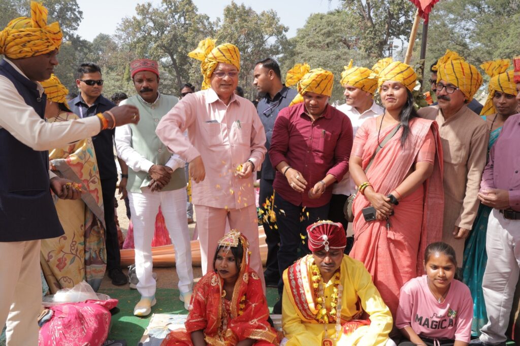 कार्यक्रम में छत्तीसगढ़ शासन के उद्योग, आबकारी एवं श्रम मंत्री लखनलाल देवांगन मुख्य अतिथि के रूप में उपस्थित रहे। अपने उद्बोधन में उन्होंने कहा कि प्रधानमंत्री नरेंद्र मोदी के नेतृत्व एवं मुख्यमंत्री विष्णु देव साय के मार्गदर्शन में राज्य सरकार जनकल्याणकारी योजनाओं का प्रभावी क्रियान्वयन कर रही है। मुख्यमंत्री कन्या विवाह योजना सामाजिक समानता, बेटियों के सम्मान और आर्थिक रूप से कमजोर वर्गों को संबल देने का सशक्त माध्यम है।