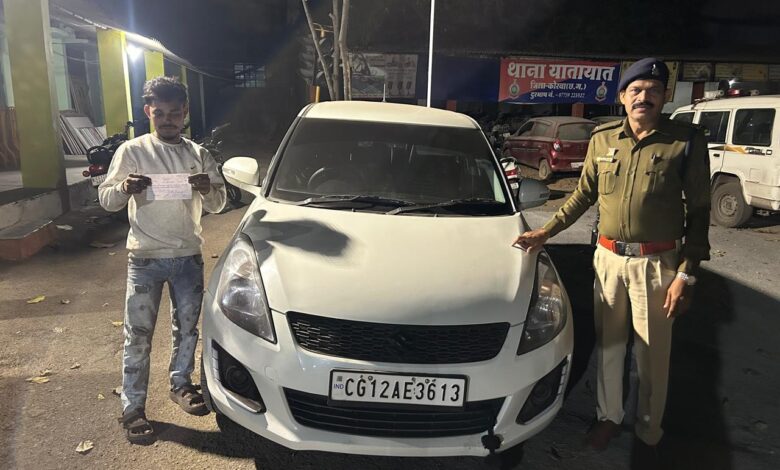 पुलिस कप्तान सिद्धार्थ तिवारी को सूचना मिलते ही यातायात पुलिस को कार्यवाही के निर्देश दिए गए। सोमवार को यातायात एएसआई मनोज राठौर की टीम ने परिवहन विभाग की मदद से जानकारी जुटाई और कार को पकड़कर मोटर व्हीकल एक्ट की धारा 100, 184, 119/177 के तहत कार्यवाही करते हुए 4300 रुपया का चालान काट दिया।
