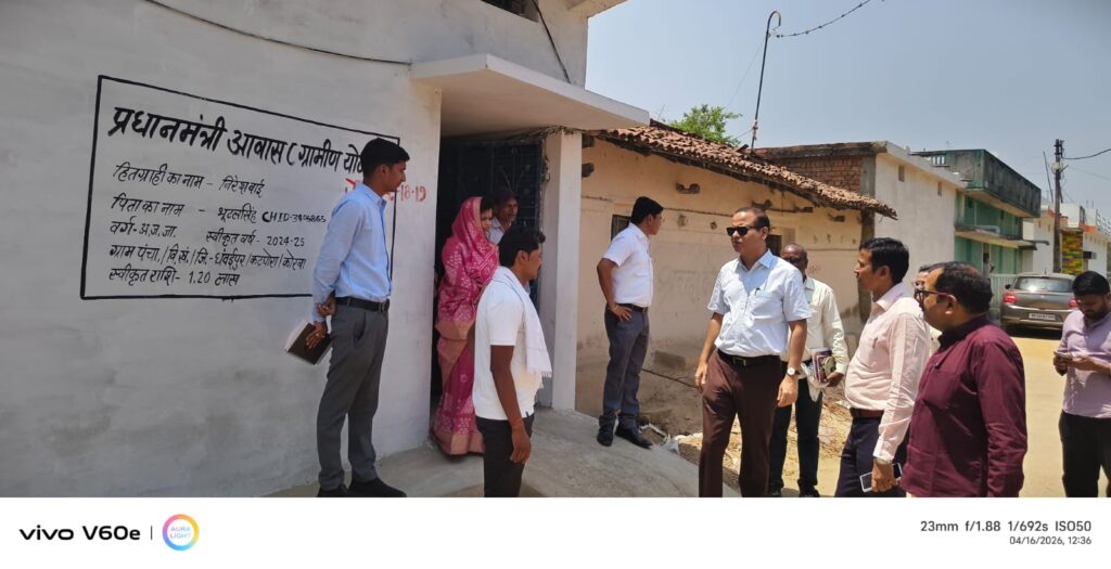 इस दौरान संचालक प्रधानमंत्री आवास योजना ग्रामीण एवं मनरेगा आयुक्त तारन प्रकाश सिन्हा ने जनपद पंचायत कटघोरा के ग्राम पंचायत धवईपुर में आवास निर्माण कार्यों का निरीक्षण किया। उन्होंने हितग्राहियों नन्हा सिंह एवं श्रीमती नीरेश बाई से मुलाकात कर आवास निर्माण के बाद उनके जीवन में आए बदलाव की जानकारी ली तथा भुगतान की स्थिति की समीक्षा की। उन्होंने अधिकारियों को निर्देश दिए कि बरसात से पहले अधिक से अधिक आवास निर्माण कार्य पूर्ण कर लिए जाएं।