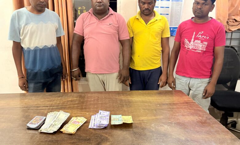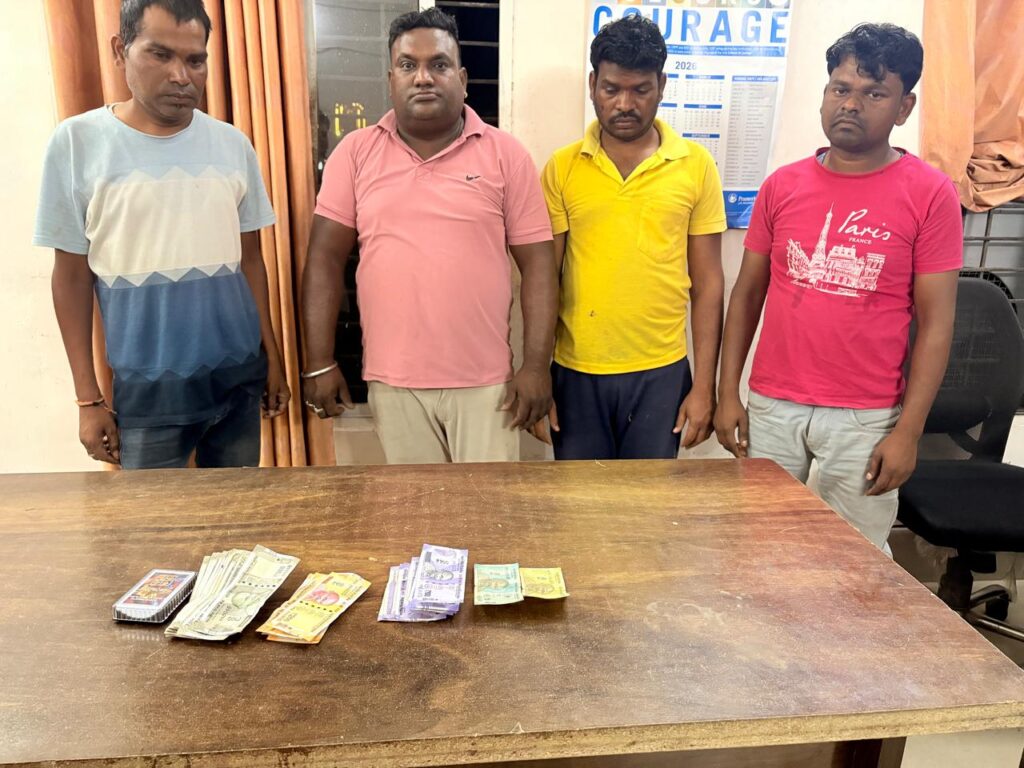 सूचना पर तत्काल पुलिस टीम द्वारा गवाह को साथ लेकर मौके पर रेड कार्यवाही की गई। पुलिस टीम को देखकर कुछ जुआरी अंधेरे का फायदा उठाकर मौके से फरार हो गए, वहीं चार आरोपियों को मौके पर जुआ खेलते हुए रंगे हाथ पकड़ा गया।