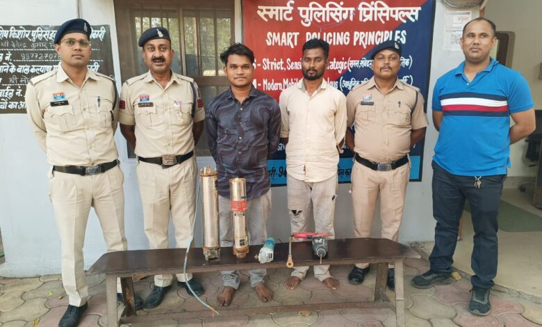 पुलिस ने आरोपियों के कब्जे से समर्सिबल पंप, हेक्सर ड्रिल मशीन, कटर मशीन सहित अन्य मशीनरी उपकरण बरामद किए हैं।
