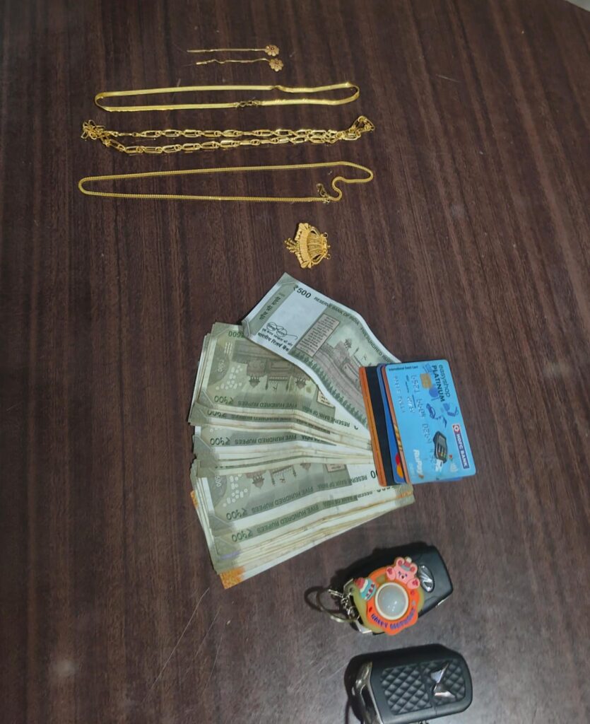रिकवरी एवं जप्ती –चोरी गए दो सोने की चेन एवं एक सोने का लॉकेट सहित कुल लगभग 4,50,000/- (साढ़े चार लाख रुपये) मूल्य की ज्वेलरी की बरामदगी की गई।घटना में प्रयुक्त कार XUV300 को जप्त किया गया है। अपराध का तरीका –