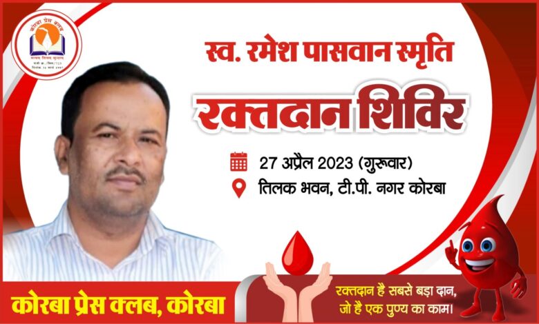 कोरबा प्रेस क्लब के तिलक भवन में स्वैच्छिक रक्तदान शिविर आज