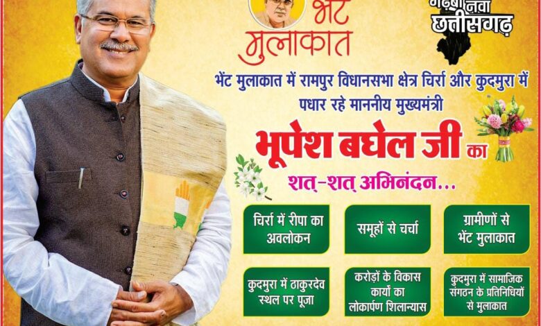 मुख्यमंत्री श्री बघेल आज करेंगे भेंट-मुलाकात, देंगे अनेक विकास कार्यों की सौगात
