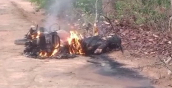 दर्दनाक हादसा…पूजा के लिए फूल ताेड़कर लाैट रहा था ग्रामीण, हाईटेंशन लाइन की तार टूटकर गिरी ताे बाइक समेत जला