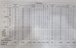 एसपी संतोष सिंह ने बताया कि कुल अपराधों में 21 प्रतिशत की बढ़ोतरी होकर 7015 अपराध दर्ज हुए है, जो की मुख्यतः एनडीपीएस और आबकारी में बढ़ी कार्यवाहियां की वजह से हैं। सड़क दुर्घटना की लगातार उत्तरोत्तर बढ़ती दर पर ब्रेक लगा है, पिछले साल जितनी ही सड़क दुर्घटना हुई है।