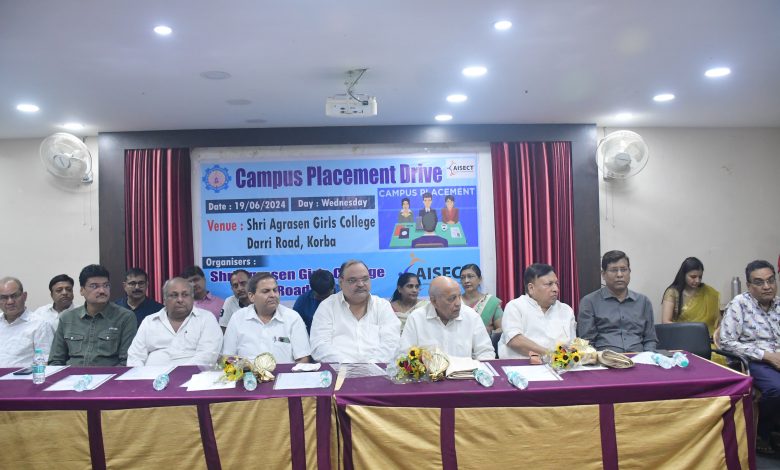 कोरबा। शहर के हृदय स्थल में स्थित श्री अग्रसेन कन्या महाविद्यालय में कैम्पस प्लेसमेंट ड्राईव (रोजगार मेला) का आयोजन 19 जून दिन बुधवार को किया गया। सर्वप्रथम प्रात: 11 बजे मुख्य अतिथि राजेंद्र अग्रवाल (अध्यक्ष अग्रवाल सभा), रामसिंह अग्रवाल एवं श्रीकांत बुधिया (पूर्व अध्यक्ष अग्रवाल सभा) के द्वारा मां सरस्वती एवं महाराजा अग्रसेन के तैल्य चित्र पर माल्यार्पण एवं पूजन अर्चन कर कार्यक्रम का शुभारंभ किया गया। तत्पश्चात अतिथियों का शाल-श्रीफल देकर स्वागत किया गया।