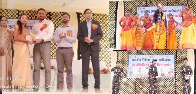 दरअसल कोरबा स्थित शासकीय मिनीमाता कन्या महाविद्यालय, में युवा अभिव्यक्ति एवं वार्षिक सम्मेलन के अंतर्गत् छात्राओं के अंदर छिपी हुई प्रतिभाओं को उजागर कर उनके व्यक्तित्व को निखारने के उद्देश्य से विभिन्न प्रतियोगिताओं का आयोजन किया गया था जिसके अंतर्गत् केश सज्जा, मेंहदी, मेकअप, सरस्वती वंदना, रंगोली, अल्पना, नेलआर्ट एवं दुल्हन प्रतियोगिता सहित कई प्रतियोगिताओं का आयोजन किया गया था जिसमें छात्राओं ने बढ़-चढ़कर हिस्सा लिया था। इन्ही प्रतिभागियों में से प्रथम, द्वितीय एवम तृतीय आने वाली छात्राओं के प्रोत्साहन के लिए युवा अभिव्यक्ति एवम पुरस्कार वितरण समारोह का आयोजन किया गया था।