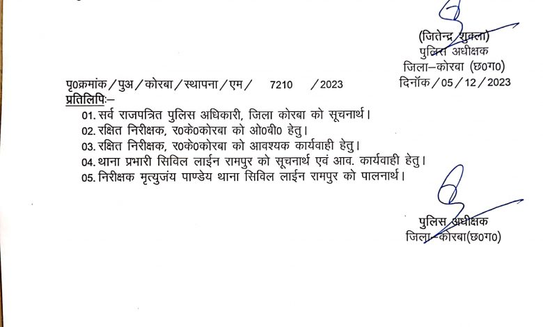 सुस्त पुलिसिंग की वजह से निपट गए सिविल लाइन थाना प्रभारी निरीक्षक मृत्युंजय पांडे, उप निरीक्षक सुमन लाल पाया को मिली जिम्मेदारी, पसान थानेदार को हटाकर नवल साव को दिया गया मौका, कई अन्य थानेदार भी नपेंगे