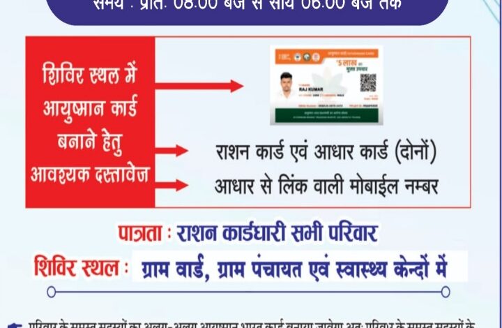 आयुष्मान कार्ड बनाने महाअभियान 07 जुलाई को, शहरी एवं ग्रामीण क्षेत्रों में बनाए जाएंगे कार्ड