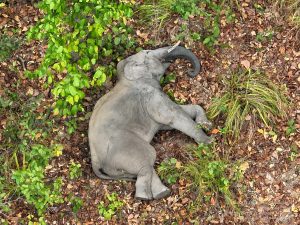 कापानवापारा के जंगल में निंद्रा की मुद्रा में हाथी