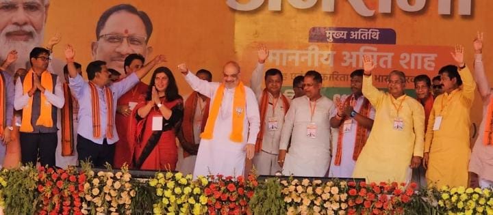 कटघोरा में जमकर गरजे केंद्रीय गृह मंत्री अमित शाह, शेर की तरह दहाड़ते हुए बोले: एसटी, एससी और ओबीसी के आरक्षण को न हम हटाएंगे और न कांग्रेस को हटाने देंगे