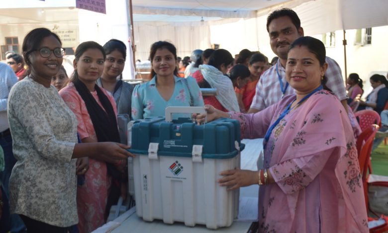 ईवीएम लेकर मतदान केंद्रों की ओर रवाना होती महिला मतदान अधिकारियों में दिखा गजब का उमंग