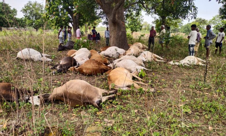 नौतपा के दूसरे दिन सुबह एकाएक बदला मौसम, बारिश के साथ गिरी गाज, पेड़ के नीचे खड़े 23 मवेशियों की मौत