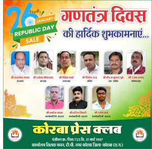 कोरबा। कोरबा जिला मुख्यालय में आज 75 वां गणतंत्र दिवस हर्षोल्लास के साथ धूमधाम से मनाया गया। कोरबा के सीएसईबी फुटबॉल ग्राउंड में जिला स्तरीय मुख्य समारोह का आयोजन किया गया। जिला मुख्यालय में आयोजित मुख्य समारोह में मुख्य अतिथि वाणिज्य, उद्योग एवं श्रम मंत्री लखन लाल देवांगन उपस्थित थे। उन्होंने ध्वजारोहण कर परेड की सलामी ली। इस अवसर पर अनेकता में एकता के प्रतीक गुब्बारे आकाश में छोड़े गये। गणतंत्र दिवस के अवसर पर जिले के शहीदों के परिजनों को शॉल, श्रीफल भेंट कर विशेष सम्मान किया गया और वीर सेनानियों की शहादत के प्रति कृतज्ञता व्यक्त की गई।