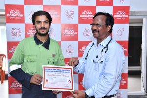 विश्व रक्तदाता दिवस के अवसर पर कंपनी द्वारा आयोजित एक दिवसीय मेगा रक्तदान शिविर कोरबा जिला चिकित्सा एवं स्वास्थ्य विभाग के सहयोग से बालको अस्पताल के विशेषज्ञ डॉक्टरों और नर्सों के देखरेख में संचालित किया गया। समर्पित चिकित्सा कर्मचारियों ने शिविर के दौरान रक्त संग्रह के लिए तकनीकी सहायता प्रदान करने के साथ ही रक्तदान प्रक्रिया और इसके लाभ के बारे में स्वयंसेवकों के बीच व्यापक जागरूकता पैदा करने में भी मदद की। सावधानीपूर्वक स्क्रीनिंग और जांच के बाद एकत्रित रक्त को कोरबा के सरकारी मेडिकल कॉलेज के रक्त बैंक में संग्रहीत किया गया। जरूरतमंद लोगों को ब्लड यूनिट निःशुल्क प्रदान की जाएंगी। थैलेसीमिया, सिकल सेल, कैंसर, सड़क यातायात दुर्घटनाओं, गर्भवती माताओं और हीमोफिलिया वाले व्यक्तियों के इलाज के लिए उनकी रक्त आवश्यकताओं को पूरा किया जा सके।
