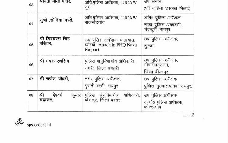 कोरबा। राज्य सरकार ने गुरुवार को राज्य के विभिन्न जिले में पदस्थित पुलिस अधीक्षक व नगर पुलिस अधीक्षक स्तर के अधिकारियों का तबादला आदेश जारी किया है, देखे लिस्ट…