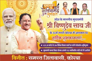मुख्यमंत्री विष्णुदेव साय आज रहेंगे कोरबा में, जिले को 625.28 करोड़ से अधिक लागत की देंगे अनेक विकास कार्यों की सौगात, 102 नव विवाहित जोड़ों को देंगे आशीर्वाद