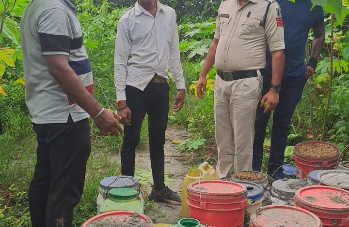 बालको पुलिस ने किया लालघाट नदी के पास 505 लीटर महुआ शराब जप्त, महुआ पास और शराब बनाने के सामान को किया गया नष्ट
