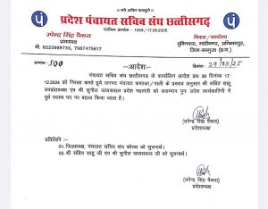 कोरबा। छत्तीसगढ़ प्रदेश पंचायत सचिव संघ के प्रदेश अध्यक्ष उपेंद्र सिंह पैंकरा और उनकी प्रदेश कार्यकारिणी की बैठक में समस्त पदाधिकारियों द्वारा सर्वसम्मति से निर्णय लिया गया है कि 17/12/2024 को कोरबा जिला के कुछ सचिवों द्वारा एक गलत शिकायत करके फर्जी आरोप लगाकर कार्यवाही हेतु प्रदेश अध्यक्ष को पत्र प्रेषित कर संवित साहू प्रदेश उपाध्यक्ष (करतला ब्लॉक) और सुनील जायसवाल प्रदेश महामंत्री (पाली ब्लॉक) को कुछ माह पूर्व पद से निलंबित करने हेतु षड्यंत्र किया गया था। जब मामले की जाँच की गई तो वह शिकायत बिल्कुल निराधार पाई गईं और करतला ब्लॉक इकाई ने 04/01/2025 और पाली ब्लॉक इकाई के 24/12/2024 के सभी सचिव सचिवों ने ब्लॉक इकाई की तुरंत बैठक कर प्रदेश अध्यक्ष और जिला अध्यक्ष को तत्काल बहाल कर सूचना दे दिया गया था।जिसके तारतम्य में 29 मार्च को पुनः संवित साहू को प्रदेश पंचायत सचिव संघ के प्रदेश उपाध्यक्ष और सुनील जायसवाल को प्रदेश महामंत्री के पद पर ससम्मान नियुक्त किया गया। इस बहाली आदेश के पत्र से पूरे प्रदेश में पंचायत सचिव संगठन के पदाधिकारियों और इसके समर्थकों को अत्यंत खुशी का माहौल हैं।