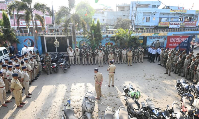 होली एवं रमज़ान ईद पर्व को शांतिपूर्ण संपन्न कराने कोरबा पुलिस का फ्लैग मार्च