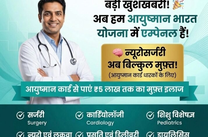कोरबा। जिलेवासियों के लिए राहत भरी खबर है। शहर का प्रतिष्ठित स्वास्थ्य संस्थान Meena Jain Memorial Hospital (एम.जे.एम. हॉस्पिटल) अब आयुष्मान भारत योजना में एम्पैनल हो गया है। इसके साथ ही आयुष्मान कार्ड धारकों को यहां ₹5 लाख तक का मुफ्त इलाज उपलब्ध होगा।अस्पताल प्रबंधन के अनुसार, आयुष्मान कार्ड धारक मरीजों के लिए कई प्रमुख चिकित्सा सेवाएं योजना के तहत…