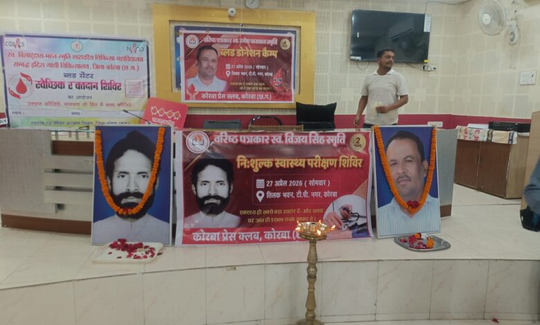 श्रद्धांजलि और सेवा का अनूठा संगम: कोरबा प्रेस क्लब द्वारा 27 अप्रैल को विशाल रक्तदान एवं स्वास्थ्य शिविर